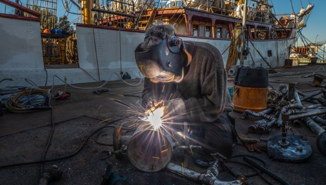 Salty sailors versed in the ship’s life, know that adventures riding winds across the open waves are just a piece in the puzzle that represents owning, repairing, maintaining and running any sort of ship, moreover if that vessel is constructed around a centenary hull. Doesn’t matter if she is made out of the classical timber or the hardest steel, high maintenance requirements will keep many sailors busy for relatively long periods of time every year.Scraping and sanding damaged varnish, applying new layers again and again will be part of your daily lifestyle in a timber ship or to maintain the wooden elements in any vessel. Osmosis blistering will threaten the fibreglass of your ship. And there is a constant war to brawl against rust in a steel hull. With no sailing trips running for the next months, our Ocean Wanderer Europa can enjoy for once in many years the time for a longer refit and a rest, yet another consequence of the change on everybody’s lives the virus pandemic has produced worldwide.From the early morning, hammers, wire brushes, but preferably power tools, are ready to use for one of the main occupations in the shipyard, rust-busting from below decks to up the masts. Varnish scrapers in hand for others, and later on brushes and paint often drive to the end of yet another day of a classic refit day. As usual characterised by the steady advance on all projects with the ship dipped in a cloud of noise, dust, every so often welding and grinding sparks and grit, wood shavings and paint. For instance this work made for many interior areas of the hull itself to see the light once more after many years behind shelves, insulation materials and floor boards. Amongst the dust billows and noise from rust-busting and grinding in the dry stores area, her beautifully made shell out of old riveted steel plates surface and gets an overhaul. Busy engineers sorting out and replacing the maze of pipes running all around the engine room, crouch over the naked guts of the ship. Boatswains, officers and captains assign jobs and straight ahead get hands-on with the rest, while dealing at the same time with inventories, invoices, ordering what is necessary for the jobs, and what it seems to be an endless amount of paperwork. Amidst everything, the galley as usual excels with the meals and ship’s organisation. After weeks like that, a much welcomed Saturday resting day was spiced up with a typical Patagonian Asado, as a sort of event for the crew to celebrate our Director's, Leentje, birthday and the soon farewell of our Magellanic Engineer, Sebas, after his months spent on board.Jordi