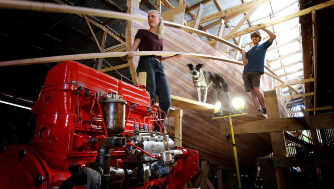 Since 1994 Bark EUROPA has sailed with an international crew; all part of the worldwide EUROPA family, and with every member their own story to tell. Crew members Matt and Iefke have been sailing on EUROPA since 2014 and 2016. These are their adventures:We met on EUROPA while sailing from the Netherlands towards Montevideo. Matt had been on board for a while and passionately worked as Bosun when Iefke joined as deck crew in 2016. We sailed the North and South Atlantic voyages together in the years after. Our joint passion for sailing and traditional boats led us to embark on our own adventure of building a boat in Southern Tasmania.We loved sailing on EUROPA for the family we became part of, for the ship and her traditional rigging and for the voyages she undertakes, being a ship that truly sails. We've made friends that are like family and learned all about life on the ocean and decided that we wanted to keep sailing. When we celebrated our marriage in 2018 we were surrounded by Bark EUROPA crew members from all over the world which made the day extra special. Sailing EUROPA gave us the skills and the confidence to start the adventure of building our own home on the water. We are currently building a 41ft wooden pilot cutter inspired sailing boat that will take us around the world when she is finished. We hope to follow in the footsteps of the great Ocean Wanderer and explore the waters of our world under sail, together with our very own little ships dog Obie. You can have a look at our building project on our social media page: A boat by the river