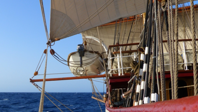 Then you probably also realize that this number of 23°-27' is not a coincidence. It is the tilting angle of the earth-axis and the origin of our seasons… and a lot more. Anyway, we are in the tropics right now and are encountering a very nicely developed Northeast Tradewind which pushes us with a good speed towards the Cape Verde Islands. The usual Azores High pressure system is pushed down South at the moment and lies like a long snake from the Golf of Biscay to Madeira just North of the Canary Islands and then with a large southerly bend crossing the Atlantic towards Bermuda.