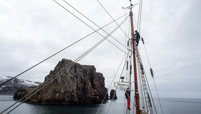 After a good couple of hours it was time to return aboard, next plans were to cross the Bransfield Strait, the 120nm wide stretch of sea that separate the South Shetland Islands from the Antarctic peninsula. Once off Port Foster and in open waters again, For Topsails are set straight away, followed a bit later by the Fore Top Mast Staysail, and under fair winds this time, Europa sails along in a good course at between 5 to 6kn. Evening, night and sure still during tomorrow, we head towards the entrance of the famed Weddell Sea through the Antarctic Sound. In that area we to try to spend the next few days.