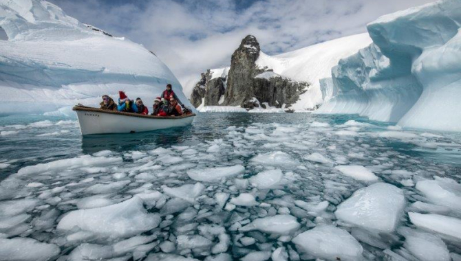 Our intentions were to explore by our small boats the channels in-between both of them, usually crowded with icebergs and bergy bits, while the Europa holds her ground facing the high glacier fronts of Trinity. The waterways we head towards are what we call an iceberg graveyard, where drifting ice from the Bransfield Strait gets trapped on their shallows.