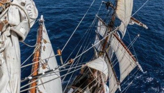 Dying winds veering to more Northerlies made for striking all Squares and Lower Staysails during the day, furling straight away the Royals. Europa keeps motorsailing with the remaining Staysails under good weather, clear skies and temperatures at the verge of what we can call warm.