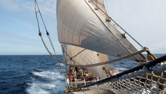 Seven minutes past five on the 26th we had made enough distance both to the North and to the West to be sure we would manage – reaching this point Janke decided to turn of the engines. Suddenly – silence. Sailing. We slowed down to about 6 knots to start with, but soon the wind picked up and we were back to 8+ knots in the right direction. As the wind increased during the night, we healed more and more, finding new positions in our bunks to prevent falling out, with more and more sails being taken down, and finally a rip in our fore course as the wind had reached 40 knots. All good, we have ripped sails before, and repaired them as well. All well, it was a bit more difficult to get in and out of harnesses and to get the midnight snack in and maybe out of us, but at least we were rounding the Horn under sail – maybe not officially, but in a way.
