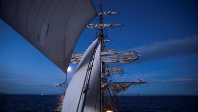 And so we make our entrance to the Drake again – in the evening sun under sail, the water calm and a dolphin our two showing up alongside – we almost reach the point where we untie our deck chairs and start announce things through a PA system – so present is the feeling of being on an evening cruise, a Drake cruise. We are about to finish a day - full sunshine day of climbing instructions and watch familiarisation. The sails are up, we are making a calming three and a half knots and all is fine. Well, soon after our evening meeting the wind drops, our speed as well, and we drift around a bit first waiting than taking away all sails we had just set and the engine is switched on for a bit – but still, there is a certain luxury in ´drifting around´ at the beginning of a stretch of water which is considered the wildest in the world. As the moon comes out and the sky clears and the sea watches start the calm feeling stays. Heading for Antarctica many things can be unknown our uncertain – that this feeling will change as we come further out on the Drake is not one of them.