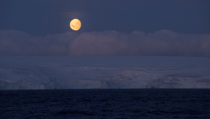 In the late afternoon of Thursday the 8th we made our entrance between George island and Robert island. For a moment all was calm – land was sighted, penguins were porpoising along and sails were taken down and furled. We had arrived! As we passed Robert Island however, conditions were, just as Janke had predicted the night before, very Drake like. Sometimes we call the Bransfield strait the mini Drake, today this name was very appropriate. We are slowly pitching our way against the wind – engines full on – reaching a speed of close to 3 knots as we are heading straight into the strong south westerlies, in our mind the hopefully calmer waters close to Yankee harbour are waiting. Pitching yes, but what an entrance! As the sun slowly sets, taking the time it takes in the polar regions, the almost full moon rises over the glaciers of Robert island, appearing and disappearing behind a thick ribbon of clouds. All sails are furled, Janke has taken over the steering, seawatches are finished for now. Tonight we will all have a full night of sleep, tomorrow we might step on land. It will all depend on the wind …