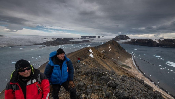 Still in quite strong winds, 25kn steady but gusting up to 38kn now and then, Europa drops anchor over a relatively shallow spot that prevents large icebergs to drift over it, providing a relatively good anchorage. Nevertheless, a second anchor was necessary to properly hold our ground. In front of us, the one mile long and narrow Devil Island, with a low summit at each end resembling the horns of the Devil, which give it its name. Such a descriptive denomination was given to the island by the already well known to us, Swedish Antarctic Expedition under Nordenskjöld’s command that lasted between 1901-1904. We have been following their steps for the last few days, as they discovered some of the most interesting places in this area of the Weddell Sea. Relevant to their story as well is the large conspicuous cliff of Cape Well-met, the close by headland of Vega Island, visible during all of our landing and scene to another epic moment in the Nordenskjöld saga. In that epic story of Antarctic struggle and survival, at Cape Well-Met the three men that overwintered at Hope Bay and were making their way towards Snowhill Island, literally walked into Nordenskjold’s sledging party, exploring the Prince Gustav Channel on 12 October 1903.