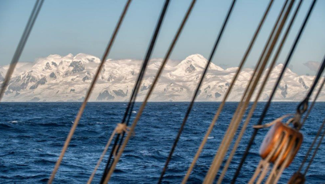 After setting some canvas during the night and motorsailing our way out of the South Shetlands, early morning found us entering the Boyd Strait turning off our engines and enjoying the SW-ly winds of about 20kn. This wide channel separates Snow and Smith Islands, linking the Drake Passage with the Bransfield Strait. First sailed and named by James Weddellduring his expedition in 1823, after Captain David Boyd from the Royal Navy.Under main course, top sails, lower and middle staysails and the spanker, we steer a 320º course, leaving Antarctica behind under clear skies which allow us to have a look at the low lying Snow Island in the East and the spectacular Smith Island on our port side. An incredible setting with the Europa under sail as a great farewell to Antarctica. We set topgallants and outer jib on slightly decreasing winds, caused by the wind shadow of the more than 2000m high mount Foster, the highestpoint of the Imeon Range, that runs over the whole of the mountainous Smith Island for about 20nm. This high mountain range was sheltering the NE corner of the island and surrounding waters from the 15 to 20kn of SW-ly winds, but gradually weget into more open waters catching again the open waters windfield, keeping us at a good 5 to 6kn progressing under sail for the whole day. However, in the afternoon the wind started to decrease, a tendency that will continue for the rest of night and tomorrow if the forecast is correct. That made for adding the rest of our canvas, but the higher staysails. Like this we made way until after dinner, when it was necessary the use one of our engines as help to the sails to keep an average speed of about 5kn. Looking ahead, Captain and Mate, using the new technology of weather and wind forecasts that can be downloaded in the bridge computer and layered over the sea charts, trace the best routing for the oceanic sailing. This time we may have to use longer time than for other crossings through the Drake Passage, or a less elegant way of doing it, using our engines to push through the light winds, then northerly winds almost straight on our nose. That way of programming speeds and sailingconditions while looking ahead, just make us think on how daring it must have been in the old times of sailing and of discovery of Antarctica, in the sailing vessels of the 18th and beginning of the 19th centuries. They had no possibilities for proper weather forecasting, their charts and maps were not accurate if they even existed, and their capabilities of precise positioning were still under development. To introduce us a bit more on the old and new navigation techniques, Maria started todaywith her lectures about it. First starting to explain the concepts of a nautical chart, latitude, longitude, magnetic variation and deviation of the bearing to understand the meaning of dead reckoning navigation, extremely important for the next step: celestial navigation. Not completely leaving the subject, Jordi today had a talk with us about the sea ice, its effects on the navigation in the old times, trapping and crashing ships while drifting following the oceanographic currents of both Arctic and Antarctica, when sea ice charts and satellite pictures were not available either. But also, we were introduced to the processesinvolved on the freezing of the seawater and its implications for the global oceanic circulation of the planet, producing major flows driven by thermohaline effects. Formation of deep-water masses, following the winter freezing of the seas in the Polar Regions, plus their movements around the world’s oceans, which have great repercussions on controlling the global Earth climate. In the evening, after all the talks and day’s activities, a mixed group of Hourglass dolphins and Pilot whales payed us a short visit. Both species are normally seen slightly further north of our position, still at the latitudes of the South Shetland islands, but the rise in surface water temperature to about 4ºC may have helped on their incursions further South. The Hourglass is a small oceanic dolphin with a characteristic and striking black and white coloration. Typically from cold waters, mostly circumpolar around Antarctica, being the southernmost dolphin species recorded, while the Pilot whales from thesouthern hemisphere are principally associated with the Humboldt, Benguela and Falklands currents. However, it is a largely nomadic species visiting sometimes Antarctica.