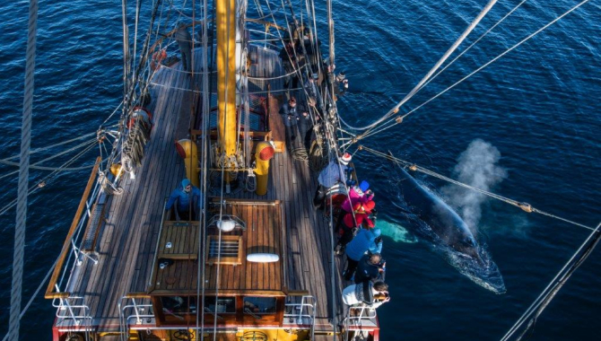 We used the afternoon to make our way southwards to Snowhill Island, first through open waters, with the Erebus and Terror Gulf clear of ice. This wide stretch of usually ice filled waters was named by James Clark Ross after the two ships used on his expedition.