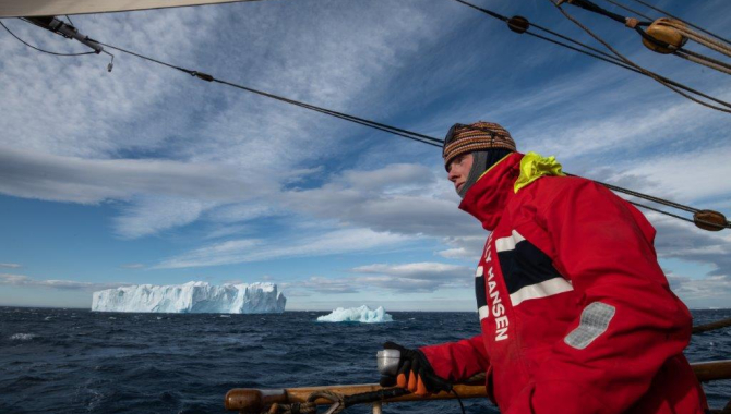 Hi all,Position: 57-51S 047-27W Scotia SeaCOG: 055TSOG: 8.0KNETA Elsehul (South Georgia) 29 MAR 2023 AMYesterday we sailed mostly full and by under an overcast sky. The wind hovered around 5 Bft and the sea and swell have flattened out, which made for a smooth ride. Almost like on rails.In the afternoon we had a visit from hourglass dolphins and every now and then we see Humpback or Fin whales blow.With the extremely high number of birthdays on this trip, we already had the fourth apple pie session after dinner. This time to celebrate Judiths birthday. Did she have to bake it herself? Eight more birthdays to go, so I hope we don't run out of apples.Next day early morning the drizzle kicked in with the approach of a wave in the isobars. This wave should give us a more westerly wind and enable us to sail up to the latitude of South Georgia. 400 miles to go.