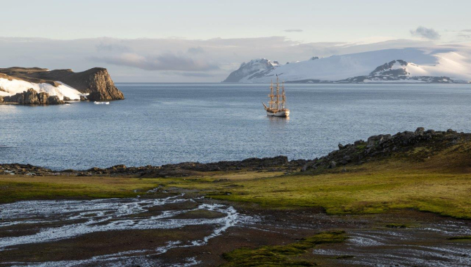 The ship approaches Aitcho Islands while sightseeing Negra Point, the dark rocky hill tugged amongst the glaciers that cover Robert Island, a few icebergs scattered around, and large glacier fronts. And by Lunchtime, she rounds the cliffs at the southeastern coasts of Cecilia Island and reaches her anchorage at Barrientos. Here she plans to stay the rest of the day and evening, giving us the possibility for a couple of activities ashore.