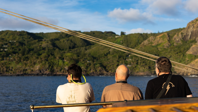 It will be difficult for me to explain everything I felt and thought when we first laid our eyes on Pitcairn Island. To sketch the setting, I need to give some background information on the days prior. James Walters, son of Stephen Walters, has accompanied us on this journey. His father was involved in the creation of the famous movie “The Bounty’ movie, featuring Mel Gibson. On a magic starry night, we watched this movie on Desmond – being accompanied of the sound of the waves around us. A magical experience. And thanks to James’ upbringing he has become a walking encyclopedia on anything to do with Pitcairn Island and its fascinating history. He was kind enough to share his knowledge with us during a very impressive talk. Since then, I have become slightly obsessed with the history of the island and of course, the events that unfolded on the Bounty. I even dare to say that it is maybe one of the best stories I have heard in a long time - even more sowhen one realizes it is not fiction. And we are about to set foot on the location where it all happened. It feels a little bit like going to the castle of Harry Potter – if that would have been possible. So why is this Island so special? And why are we all so interested in its history?