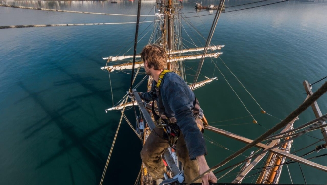 Water starts rising. Now it is already touching the keel, now at the propeller level. Then the shafts are underwater, the seawater inlets too. We are floating. That’s what is heard on the vhf radio while the crew is below decks checking all the areas for a safe return to the water, as the dry dock where the Europa has been on the dry for the last week now is flooded. A pilot on board, around the ship many hands manning mooring lines and tug boats pulling us. As soon as they let go their ropes, we are on our own at sea… well, for about 5 minutes until getting to our anchorage for the next couple of weeks. The rest of the repairs and maintenance jobs can be done here under the curious looks of Pelicans, Cormorants, Seagulls, and Sea Lions, sitting in the middle of Talcahuano Bay. The work advances, some jobs are done, and others are on the go. But there’s always more to come. A day here brings us to the usual rust-busting; grinding; welding pipes to properly fit them, changing some of the old ones; wire seizings; painting; troubleshooting equipment; cable-stays going up and down, being tensioned, re-tensioned, loosened, and then again. Everyone is occupied with some of those or other projects. A walk around deck with our busy Captain or the Mate probably will end up with something new to get our hands on. Bosuns walk around with full lists of tasks and, like if that wouldn’t be enough, they keep a sharp eye to spot anything that could be done during this period of maintenance and while sailing the next trip too, when weather and seas allow.