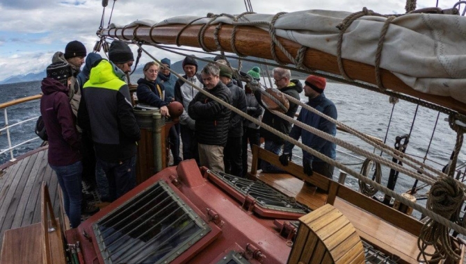 “There must be a beginning of any great matter, but the continuing unto the end until it be thoroughly finished yields the true glory”. Sir Francis DrakeWith her full complement of 57 people, between Voyage and Permanent crew, Bark Europa departs from Ushuaia, ready and provisioned for a seven weeks trip along the Polar and Temperate seas of the South Atlantic. Before casting off our mooring lines everybody must attend the Safety Instructions and drills prior to start any sailing trip. Then, with the mandatory Argentinean Pilot on board is time to leave the port, waving goodbye to the disembarking permanent crew, and start heading to the neighbor bunkering area, where we filled up our fuel tanks. In the meantime we kept going with the instructions and familiarizations, starting with learning how to safely climb the rig, necessary if we intend to go aloft to help the crew furling and unfurling sails or just for the sake of taking a good picture. Once ourselves and the ship were ready, the relatively calm waters of the famous Beagle Channel lay ahead of us, offering good conditions and time enough for all us to get introduced to our duties on board during the sailing periods between the planned landfalls: line handling and deck-work, steering and lookout. All before we all join the Watch-system and we hit the legendary open waters of the Cape Horn area and the Drake Passage. In the meantime we leave Ushuaia behind, not to be in a city again until the end of March, when our arrival to Cape Town is scheduled.Soon after leaving the bunker Station, the characteristic variable W-ly winds that usually blow over the Beagle Channel, made for setting some canvas. For first time during the trip we were pulling on braces, halyards and sheets, getting our first contact with the hundreds of ropes that surround us on deck. Looking now of a baffling complexity, sure the maze of ropes will soon become familiar to us.Helping the permanent crew, and under the attentive look of our Mate Finn, Lower Staysails are hoisted, together with the Lower Top-sails. All an all collaborating with our engines to reach between 7 to 8 kn of speed. But not long before lunch time, the wind veered paying tribute to their changeable reputation along the Beagle, and many helped striking the Staysails and bracing the yards square.During the day, framing our ship and offering great views and wildlife sightings, the Beagle Channel landscapes don’t stop amazing us. Actually, its shores are home for the southernmost forests in the world, both in its Argentinean and Chilean coasts, as this passage represents a natural boundary between those two countries. Those woods belong to what is called Sub Antarctic temperate rainforest system, where three species of southern-beech trees dominate the biological communities. From now on the icy Antarctica is ahead of us. Further away lays the tussock grass covered slopes and glaciated interior of South Georgia, and broadening our view ahead, the volcanic Tristan da Cunha. Moreover, the history of the renown Beagle Channel, played an important role on the history of Patagonia, represented a great navigational feat and reinforced the duality between religious believes and science. Sailing along its famous waters, excited as we all are for the start of our ambitious voyage, we should think on the past times when between 1826 and 1830 the recently refurbished Cherokee class brig sloop ”HMS Beagle”, equipped as an exploration ship, underwent a fantastic andadventurous journey with the task of charting the waters of the southern part of South America. During the trip, her Captain Pringle Stokes became depressed and shot himself, as result of the loneliness of command under the rigid regulations of the Royal Navy on those days. Lieutenant Skyring, now in charge of the ship, brought her to Rio de Janeiro where Robert Fitz Roy was made Captain. The way along such famed channel took us the whole day, but already at 16:30h the Pilot that had accompanied us was picked up the Pilot boat. Right away the engines are turned off and a bit more canvas is added, now sailing under both Upper and Lower Staysails, all the Head rig and the Spanker in the Mizzen Mast, under variable winds blowing between 20 to 30kn, giving us a good speed of 8 to 9kn. Still a bit less of 20nm of calm waters to sail, before getting off the shelter of the Beagle and Picton, Nueva and Lennox Islands, and start our way in the open oceanic waters. Unfortunately the good sailing didn’t last long and before the end of the day all squares are clued up and furled, and the staysails are also taken away. From then until late at night we motor under bare poles on a SE-ly course, while the seas grow and the wind increase slowly getting into the open waters of the Drake Passage. Since we departed from Ushuaia many seabirds had been our companions.Dolphin gulls, endemic from the Southern Patagonian waters, and King cormorants shared the time we used at the bunker pier. Before stringer winds hit us, we were off mooring and beginning our way along the Beagle Channel. There South American terns, Kelp gulls, countless Black-browed albatrosses and Giant petrels feed on swarms of Fuegian sprat. On the sandy beaches throughout the length of the channel and its islands, Magellanic penguins are busy walking back and forth from their burrows in the higher grounds. Later on, while still busy getting into the watch system, a pod of Dusky dolphins approach us, bowriding the ship and leaping off the water in a playful mood for a couple of hours. Not just they seem to enjoy following us, but also they could be seen around the numerous other ships that share the Beagle Channel with us today. We crossed paths with many of them, on their return way from Antarctica. The Dusky dolphin is small and robust species, widespread on the coastal waters and continental shelf of the temperate seas of the Southern Hemisphere, and they are common and always welcomed si