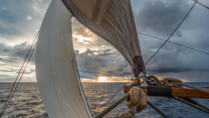 Good dayDate: 16/07/2024BT: 2330 UTC-10POS: 16°45'S 163°01'WSOG: 4,0 knCOG: 270°Good day,The wind has not been too generous, but most of the time we come pretty close to the average speed we need to make. In order to make that speed, we have stunsails on both sides now, which made for lots of fiddling with ropes, and lots of VC going up the bowsprit to take pictures of this noble spread of canvas.In the morning we trawled for plastic.It being the 16th today, we have had two birthdays, of voyagecrew Carol and Maureen, and there was an excellent mud cake to celebrate it!Also, to make this day slightly different from the one before or after, there was a pub quiz held in the deckhouse.Hans