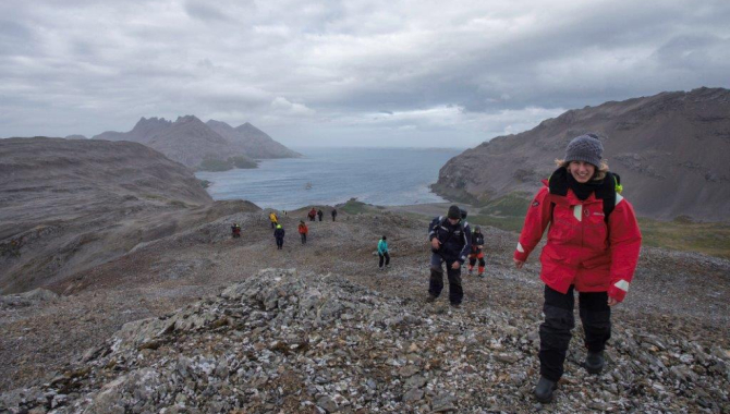 At dawn the situation didn’t show much improvement and the wind blasts continue to sweep over Right Whale Bay. With the break of the day many show up on deck to enjoy the firsts views of South Georgia and its inhabitants. For some, the view of land feels like a great relieve, and we all know it represents the beginning of a week of different activities. For the moment we start a parenthesis on the 24 hours a day sailing adventures and misadventures on the roughest waters of all, and we are ready to go ashore again over the mountains and green covered slopes. Last land we have seen a week ago was the icy Antarctica, now South Georgia, as we can see from deck this very first morning, offers a different panorama that we are ready to explore.