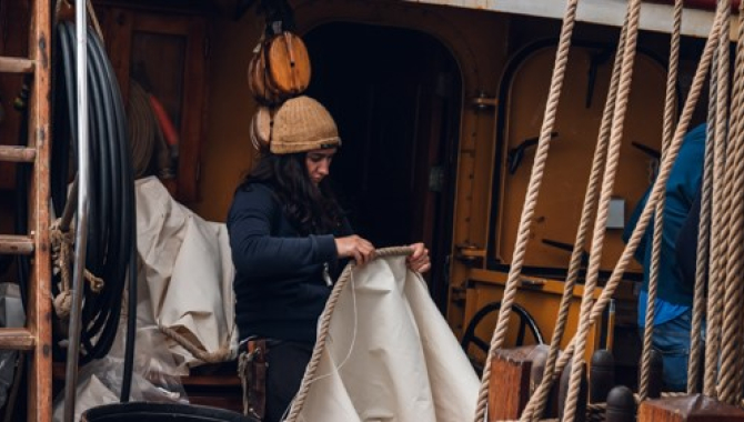 After dinner, the dishes are done, the galley is clean, and the permanent crew gathers on the poop deck for the first handover of the night. As the light disappears on the horizon, we still have plenty of tasks to keep busy, even when sail handling isn’t necessary.