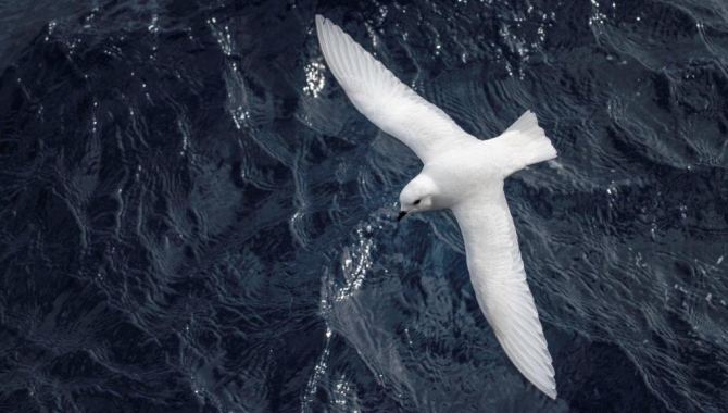 After eight long days of less than comfortable weather conditions and constant pitching and rolling of the ship, we are finally greeted by calmer seas and last evening’s wonderful sunset. Later on, the weather gradually became cloudier ending up with snow showers during the night. At that point the wind was good enough to keep a good SW-ly course and add the lower top sails to the staysails that helped our engines on our progress. But by the early morning, the continuous changes in wind direction and strength, made for clewing up the squares and furling them. Also for a while it was necessary to strike all canvas for a couple of hours, motoring on naked masts and stays, until it was possible to set some staysails once more. A couple of them couldn’t be set anyway as some damage had been found on them and they were in need of repair or replacement. The inner jib got provisionally substituted by a spare storm jib, while another one was bent-on as a main topgallant staysail. Along the journey the variable W-ly winds kept backing and veering, coming alternatively from the WNW to WSW, situation that made for several changes on tack and course, adjusting staysails and yards to every new wind condition, and our course accordingly. With a general heading to a SW direction, as straight as possible to the Eastern tip of Antarctic Peninsula, today we kept a zigzagging track. The overcast skies started to clear up during the morning, the winds to calm down and sunshine bathed our decks. The change in weather also brings a burst of energy to all of us on board, as everybody finally could enjoy a night of comfortable sleep and the sound of laughter is heard from all corners of the ship. Faces that have been missing for many days are now starting to re-appear and a healthy appetite means all food quickly disappears from both breakfast and lunch buffets. It is still cold outside though. Many layers of clothing are still necessary for our duties at the wheel or on lookout. The lookout was much less busy today than last night. Following our landfall at Signy Island and the numerous icebergs found on our way off the South Orkneys, today just a couple of them showed up far in the horizon. The easier steering as now we motor sail, plus the amenable lookout in the abating winds and seas, all helped to have a good birdwatching journey. Besides the usual sight of Cape petrels, Prions, Southern Fulmars, occasional Giant petrels and Black browed albatrosses (those a bit further south than where they use to hang around, but nevertheless good feeding grounds for them, before returning to their sub Antarctic breeding areas) today we saw two new spices of birds: the Snow petrel and the Antarctic Petrel. A beautiful sight that many of us made our best efforts to capture on camera, with varying results of success. The Antarctic Petrel is a circumpolar bird which can be found by the pack ice and iceberg zones in the cold waters of the Southern Ocean. Much more scarce and rare than its relative, the Cape petrel, its slightly bigger but share with them the black and white coloration, but presenting a distinctive pattern of just two stripes, on white, one black running from tip to tip of the wings and over the body, instead of the patchy aspect on the Cape petrels. Often, like today, they can fly together in combined flocks. The Snow Petrel is an all-white petrel with a prominent black eye and bill. We already have seen them in the South Orkneys and briefly in South Georgia, but now we are getting closer to their actual realm in Antarctica. There it often nests inland of mountain rocky tops that stick off the glaciers and ice caps as far inland as 300 kilometres. Scotia Arc islands are also their homer. At sea they can be seen on foraging trips all the way to the open waters of the Southern Ocean. Today a single individual used the apparent wind of the ship and the shelter against the headwinds provided by our rig, apparently even trying to land on several occasions. As the sun was setting after dinner, we once again tacked to stay on course to the Weddell Sea and we continue to motor sail in calm beautiful conditions towards the south.