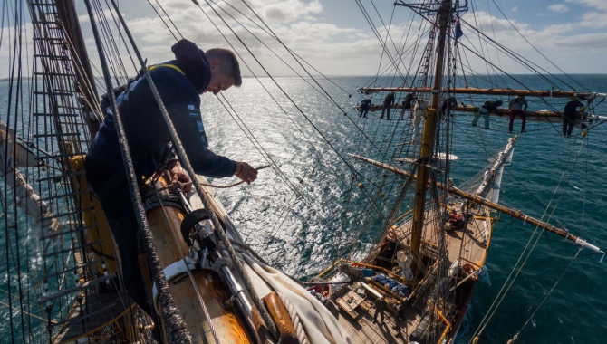 Hi all,After a couple of days with quite some wind, the wind is now slowly decreasing. We're in the process of setting the royals and outer jib back up. The distance from noon to noon was a good 200 NM! Some pretty fast sailing :-)The last nights everybody figured out that rolling on the waves requires special adjustments to almost everything. When I mentioned that we did only a bit of rolling in the 20 o'clocky some faces looked a bit disapproving at me. People experienced it differently. It affected a lot of the sleep, also my own. But still...it was just a bit of rolling.Wait till we will be sailing into an area with no wind and proper high swell. The good thing is that we now already practiced with; stowing your belongings even more steadily away, really don't leave any utensils on the table during breakfast while you're getting your warm toast, put on your socks last to prevent sliding through the cabin, and don't fill glasses and cups to the rim....and many more things. All of this needs a bit of improving I would say.In the daytime, we took the opportunity to pull out the storm sails from the lower forepeak, check them, and set them. It would be ok if they could stay in their bags for this trip, but it's good to know how to set them up and do a bit more prepping on them.Course-wise we try to sail as much South at the moment. In not too long we'll sail into areas with less and various wind. Not the best, but we'll have to deal with it, try to still get as much South / Southeast as possible and then try to hook onto the Westerlies as soon as they show up again.Groetjes, Janke
