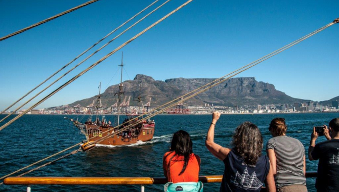 Before breakfast all sails are taken down, safety nets and lines stowed away, and the ship readied for arrival. Not long afterwards anchor goes down and we are ready to spend our last day at anchor, as the sky clears up leaving behind a gorgeous sunny day. Ideal to furl sails, wrap up the trip and get ready to visit Cape town tomorrow.