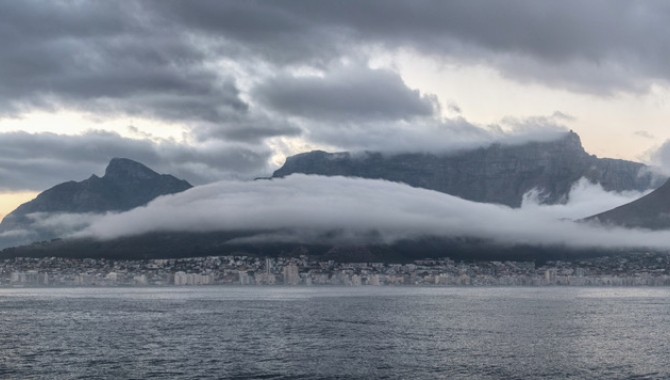 Europa made her elegant way overnight under full sail on the light breeze blowing along the South African Coast. In the early morning, a few hours before dawn, Square sails were clewed up, Royals and Top Gallants furled and the engines turned on to make the last bit approaching Cape Town. Head rig and Lower Staysails still helped the motors for a while longer, until sunrise met us furling them as we make our way over calm waters, with the lights of the city shinning in front of us and loud whale blows around.Table mountain looms over Cape Town and a thin layer of mist hoovers over the sea as we approach the city’s busy port, where we enter at 08:00h, not before new flags (including the famous nº69 from Captain Janke) are hoisted over our masts.We moored for a few hours first at the harbour where immigration papers must be done before re-positioning Europa to the commercial pier, where we get after passing through a small but dense fog bank. With the sun shining over the thin layer of mist a fog-bow grew and could be seen from decks as a sort of rainbow but on that case created from the small droplets in suspension in the atmosphere.From then on we had time to enjoy the almost forgotten land and civilisation commodities, but gathering all together again for dinner on board and meet our crew and guides one last time for a final recap of the trip.For almost two months, our life have been ruled by the life and rhythm of the ship’s world, far away from the busy cities. Many willing for return to it again, but all wandering how it will feel to be back on land and experience the busy Cape Town city life. Sure when we leave the ship tomorrow will miss things like the interesting people and special characters we met on board, the thrilling of setting sail in the open ocean, the climbing aloft, the many special moments freezing our hands on the wheel or doing lookouts under incredibly starry skies. A trip like the one is now about to end, is not just trip to Antarctica or remote Southern Ocean islands. Neither it is just an Ocean crossing, but a combination of all plus the opportunity of having a good taste of the sailor’s life in a beautiful sturdy old lady like the Europa is, on trip of a lifetime.Once ashore is certain that all, some earlier some later, will realise how special were all the experiences on board and how unique the places we visited really are!