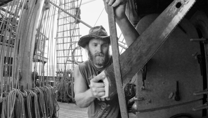 Calm conditions allow us to undertake some maintenance projects on deck, like preparing a new stay, to be rigged later and Arran, our Chippy, keeps on building wooden boxes for our engineers. But as it gets closer to dinner-time the wind picks up and with both permanent watches on deck we take away all Studding and Skysails, the latter ones just to be set a bit later again. The change of watch after dinner takes place under gorgeous sunset colours and during the night the wind is backing to the North and now the old lady slides over the waves with 8 to 9 knots on a SW-ly course.