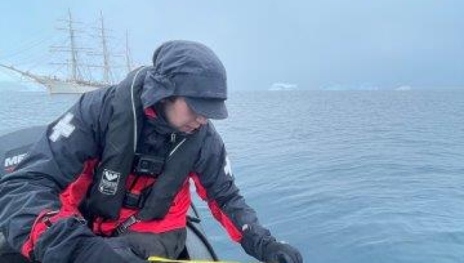 Next was the collection of water samples to look at the biological composition of the phytoplankton communities. This was done using the phytoplankton net. Back on board, we had a great evening in Cierva Cove so we have not looked through the samples in detail yet. However, at the base of the net, where the sampling jar is attached, the water was clearly discolored indicating the presence of phytoplankton. From Laura’s quick peek through the microscope at the water from the sample jar, she found a wide range of phytoplankton types. These are shown in the images. Tomorrow Laura will let us know more about these organisms and what they can tell us about the local environment.