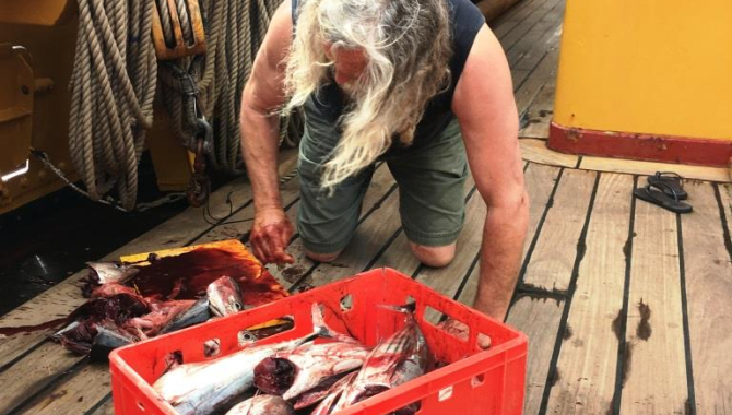 Cleaning the fresh fish, a gift from some St Helena fisherman. Checking out the potatoes on board a returning ritual. But in the end it ends up on your plate and tastes delicious. Thanks to the Cooks Marianne & Gjalt.