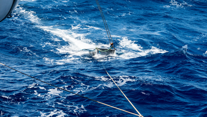 Noon position 11.00 UTC:18°35'S 004° 17'WSpeed: 6 to 8 knots,COG 328°We are closing in on St Helena. As the crow flies, or rather the soft plumage petrel, there is still 175, or so, NM to be done.The 2-8 watch struggled to find anything worthy of reporting, but the 8-14 was action packed indeed.We trawled for plastic at the breakneck speed of 4 knots. Due to some alterations, it is now possible to trawl at a slightly increased speed.We did three trawls, the last one coinciding with pikheet. After that the sails were hoisted again and put on the other tack. It was a slow gybe.For lunch there was lentil soup and a sausage roll.We aim to arrive at St Helena, sometime tomorrow afternoon. If this will be in time for visiting the harbour master, remains to be seenGroetHans