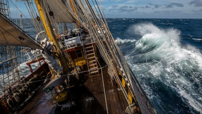 Amazing how many different soups the team comes up with, so far no repeats and some interesting discoveries like spicy peanut or French parsley soup. In the afternoon we also enjoy a cookie and tea/coffee break. Peer has been warning us of cookies running out during the trip and keeps a strict rationing regime – take more than one or two and fear his wrath… But the team is well able to resupply as evidenced by the bear and whale cookies made by the team lately. Dinner is the star of the day with a delicious main – meat or vegetarian and desert. Here the skill of the kitchen team truly comes to light, they never failed to deliver even when the waves were making Bark Europa roll like crazy. What must it be like cutting veggies and boiling water in those conditions? Cooking becomes an extreme sport of sorts for sure.
