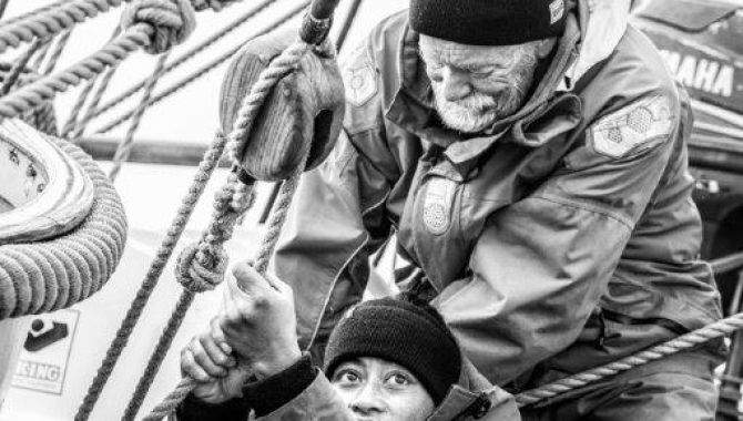 Slowly but surely on our approach to the Southernmost point of the Americas, it was time today to broadcast the great documentary “Around the Horn with the Peking”. Filmed in the late 1920’s by Irving Johnson (by that time on his first serious sailing adventure) shows the rigours of the trading under sail between Europe and Chile, on one of the last famous cargo-tall ships. Afterwards, the author became Captain, when he retired, films from his youth were rescued and then he seasoned them with his peculiar and entertaining narrative.