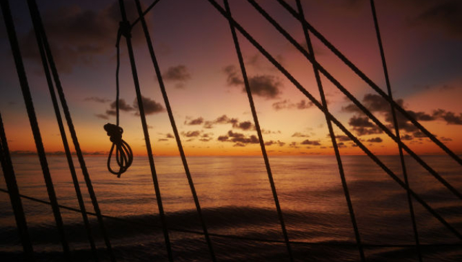 The Barometer shows only very small differences when such a front line is passing but behind the line you can expect a lot more turbulence in the air. We did not receive much rain out of it, but the increasing of the wind and also the shifts in direction gave us some sail-handling jobs during the last 24 hours. Anyway a good exercise for later when we arrive to the Northern side of the Azores High pressure system, because there the real depressions are the dominant factors in the weather.