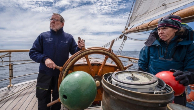 Not all is hard work, spend time trying to steer on a proper course, get cold sitting in the fore deck doing the lookouts, pulling ropes, or climb aloft, there’s always a while to enjoy the majestic gliding flight of Albatrosses and Petrels around us or to have a look at the often gorgeous sunsets, like today’s one. As the sun hides behind the horizon, it gifted us with one difficult atmospheric optical phenomenon to observe: a Green Flash. On days like today, the uppermost small segment of the sun’s disc disappearing under the horizon may turn emerald-green or bluish-green. A sort of a color flash that usually lasts only a fraction of a second. The last rays of sunlight emanating from the upper limb of the sun, are being refracted before reaching the observer’s eye. The shorter waves which appear as violet, blue, and green suffer greater refraction than the orange and red longer waves of the white sunlight. This different refraction can cause them to reach us at different times. An unusual happening but always welcome for the lucky ones that join on deck at the right moment.