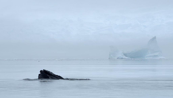 Most often, when a glacier calves, no one will see it. All these enormous glaciers in Antarctica - all the icebergs we see in the bays –only a few of them have been witnessed falling. Mostly, you will only hear a glacier calve. And even though you know the thunder arrives much later then the lightning, you will turn your head and look for the calving. You will see a wave, and maybe the newly fallen ice tumbling over, searching a balance. But the source of the sound has passed.Today felt quite the opposite. Many times a glacier calved as we were nearby and looking. Today was the day of calving glaciers and feeding whales. Not a bit, not at a distance, but right where we were and many times. It all started in Paradise, where we woke up. A beautiful bay surrounded by glaciers. Grey and calm, a bit of rain, perfect weather and surroundings for a zodiac cruise. When the first calving happened, it happened right in front of us.From Paradise we went to Neko Harbour – as did the whales. Some sleeping, just hanging around at the surface, some feeding, showing of their baleens. We saw them, not just once, but anyone staying out on deck could see them almost all the time. In Neko Harbour the calving continued. All the ice in the bay made it almost impossible to land. Almost, but not quite! We set foot on the continent again, climbed up the hill, watched out over the glacier, the ice filled bay and in the middle of all that, our ship, the Europa. When we come back on board we will head back North. We have been quite lucky here at the Peninsula. Let’s see how lucky we are with the Drake.