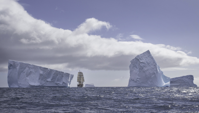 Temperature decreases during the afternoon and evening, down to 2ºC while Europa sails rough seas festooned with icebergs here and there. Speeding up to 7 to 8kn, Captain and Mate decide to clue up the Courses to reduce speed and gain manoeuvrability. Lookouts are asked to pay special attention to bergy bits and growlers, smaller pieces of ice broken from the big tabulars. Voyage crew is joined by a permanent crew member in the Fore Deck to have a good look around as we still keep our way under sail at 5 to 6kn. We all have the chance to warm up a bit joining Klaas and our guides on today’s eight o’clockie. Important information is given about the rough sailing conditions, keep good lookout and a general briefing to prepare all of us for our arrival and start of our activities ashore. A necessary reminder about history, code of conduct, biosecurity and Europa operations in this intriguing and amazing nature’s bounty that is South Georgia Island.