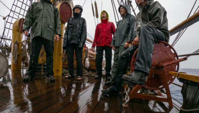 As I am writing this, rain is tumbling down, but the wind is nowhere to be found. We braced a few times, trying to respond to the little wind present, but the wind direction kept changing. As a result, we are sailing in circles under a blanket of dark clouds. The manta trawl is lying on deck, waiting for better circumstances. Our average speed of 1.5 knots, is too slow for science. The crew is now standing on deck in full weather gear, ready to take sails away in case it is necessary. There is something so cozy about it, all of us, outside in the rain, staring at the sails, coffee in hand, wondering what the weather will bring us next.