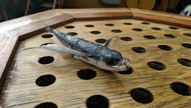 I put down my laptop and removed the fish. It was still beautifully blue, pretty solid 20-25cm long, and not at all slippery or slimy. Flying fish are quite wonderous creatures. For those of you who aren't sure: They do exist. And do a pretty good job at flying. Good enough to somehow make it into my cabin. The question is: Just HOW did the fish get in?