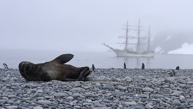Today we visited Fort Point (of Greenwich Island?); and Hannah Point and Walker Bay on the same island. Fort Point was the highlight of my day, and possibly the trip so far. I think fur seal radio had been sending the message there are travelersout there landing at those places that don’t get many visitors normally. We were met by the Fort Point Water Ballet, a synchronised and elegant water ballet troupe made up of both Chinstrap and Gentoo penguins. There were at least three pods of them in the harbour, approximately twenty per group. I could have done nothing else all day but watch them, their movement and co-ordination in the water was exquisite. On shore there was a fur seal that seemed to be the patriarch of the point. He moved slowly and was very long in the whiskers. I could imagine him speaking in a James Earl Jones voice “Welcome to my island travelers, I hope you enjoyed the ballet, the penguins have been training hard in hope and anticipation of your arrival. To the right is our castle – our Fort if you will, and to the left is our glacier. If I can be of any assistance please let me know. Just remember to walk in each others shoes.”The castle or Fort was an imposing rock where we could see many penguins climbing and hopping as high as they could. The beach between the glacier and the Fort was pebbly, but what made it stunning was next to the stones were polished and rounded pieces of ice up one side of the shore. It was like someone had poured out the frosted glass stones out of their decorative vase and placed them on the shoreline, albeit much larger, like the size of a pillow each.We then headed up the glacier. There was a lot of fresh snow, but the hill had an approximate incline of around 60 degrees. We walked up in single file, which then made sense to “walk in each others shoes” as advised by the grand fur seal. Firstly so we could follow the trail, but also to make sure we had sure footing and didn’t go rolling down the hill. It was a beautiful view from the top of the Point, with the Europa in the background. I know there are approximately fifty ships around but it really feels like we are on our own out here.We finished the hike by sliding down the hill. There was a caterpillar of toboganners in the last group led by Seth of course. He also found some large rocks to lay on and pose. I’m sure the fur seals are a distant cousin of his. As we hopped back into the Zodiac towards the ship the water ballet gave their final performance. I could of watched for longer but we needed to go.In the evening we landed at Hannah Point and walked to Walkers Bay. It is one of those places that is visited rather regularly, and whilst it had its own awe being a breeding ground for Chinstrap and Gentoo penguins, with two large colonies of Sea Lions, it didn’t seem to have the same magic as Fort Point in the morning. As we arrived there were a group of Gentoo, seeming to do a soul acapella routine whilst the group next to them were feeding their chicks. What seemed noticeable at this island as opposed to Fort Point, there seemed to be a Chinstrap/Gentoo apartheid. Chinstraps were nowhere near Gentoo rookeries, and the Gentoo that were near the Chinstrap rookeries all had their backs turned. It felt cold and class oriented. Or perhaps I’m reading too much into things. When you think of Antarctica, you think of icebergs, penguins, water, sea lions – volcanic ash is not one of the top things that would have come to mind. Once we walked through the rookeries at Hannah Point, the landscape changed significantly. It was powder, just not white, rather a dark charcoal. I felt that if the colour was changed to Iron Ore red itwould have felt like the Pilbara with the hills around and barreness of landscape. There were flecks of what seemed like red jasper in the soil, a few elephant seals and Gentoo on the beach amongst several bones of animals past. It was like we had visited two different islands when they were only a matter of metres away from each other. I’m actually quite excited about tomorrow, the plan is to head to Deception Point where we might have a chance to swim in volcanic waters. Can’t say that very often!