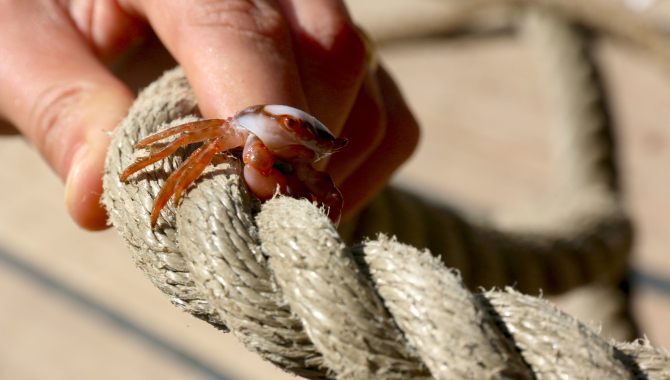 The fishing buoy still had about 2 meter of line attached to it but on the line was a colony of barnacles growing. The whole colony was weighing about 40kg and it took us quite a bit of effort to get in on deck. In between the barnacles we found little crabs and we noticed also fish swimming around the colony when we retrieved it. You really getting a double feeling it you think you free the ocean from some lost plastic but at the same time you kill a whole colony of life forms that took advantage of this little floating reef.