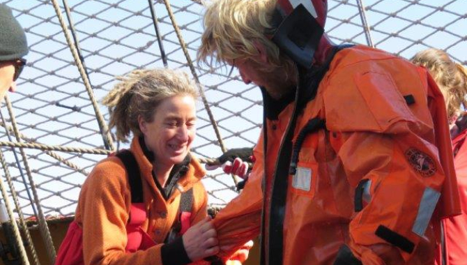But the Drake is never without excitement. We were on lookout, admiring the view when we saw something orange in the far distance on the starboard side. Not knowing what it was we decided it best to report it to the bridge. A few minutes later, we heard the bell continuously ringing – I knew it was an alarm – but which one? Then “man overboard, man overboard” – Oh my God. But quickly followed by “this is a drill.” Thank goodness for that. The permanent crew quickly got the sails down, and we made our way to the object, coming to a textbook stop alongside. The sailors will appreciate the skill needed to accomplish this with a 60 metre ship. Two of the crew had donned dry suits and were quickly in the water – the 2 degree water and swam to pick up the buoy. We had our MOB on board quickly and in no time were setting sails again. Onwards to Antarctica.