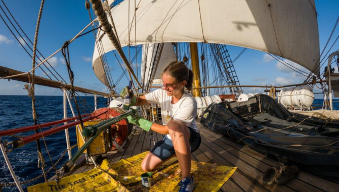 To the untrained observer it all would look like physical labour (pull ropes, climb, sand, hammer, etc), but actually all the small jobs to keep the good sailing, the good condition of the ship and properly running, require observation and thinking: slight wind variations make for Captain and Mate to react and adjust the sails and course accordingly; ropes to be changed, appliances to be painted, blocks to scrape, sand, varnish, seize and relocate; rubber boats to check, inflate and overhaul, all catching the eye of the experienced Bosun, knowing which, what and when to do.