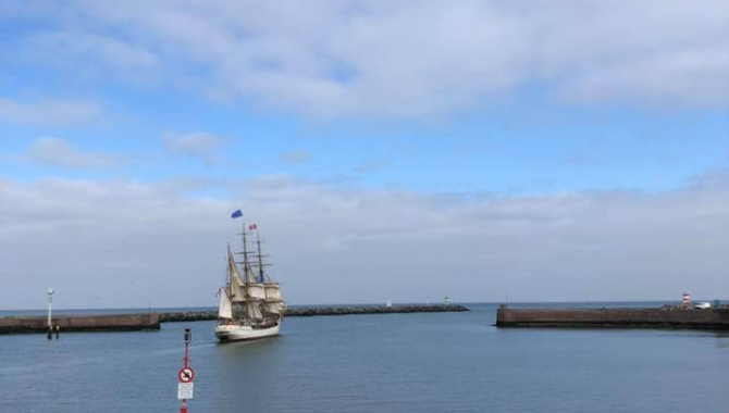 Today has been the first day at sea after an action-packed week in Scheveningen for the Liberty Tall Ships Regatta! The new voyage crew arrived yesterday evening and have since been trained in the essentials of seamanship and life at sea. Ship familiarisations took place this morning with look-out and helming (steering) lessons, then line-handling instructions before lunch on deck in the glorious sunshine. The wind and the waves of the North Sea are giving the EUROPA a gentle yet slightly pitching motion through the water on a course of 355 degrees and a slight heel to port. The sun continued to shine throughout the afternoon and the voyage crew watch system began, taking the traditional form of a “4-on-8-off” schedule. With approximately 400 nautical miles to run before our next port of call (Aalborg) we are keeping our fingers crossed for continued good weather and fairer winds… which are currently north-easterly so we’re hoping for a shift to get more sails up! But in true EUROPA style, we never go anywhere without at least 5 sails set at once. As today gradually steeps into night, the evening sun embellishes the crests of the waves in shimmering silver and gold – enough to entice any landlubber to explore the beautiful oceans. That’s all for now – stay tuned for more updates!
