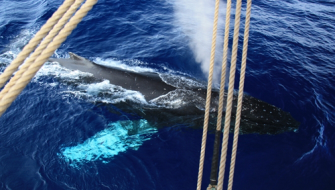 From this spectacular spot with the shipwreck, we motored through Wilhelmina Bay, heading for Orne Harbour, our next destination. The calm waters and light breeze offered perfect weather conditions to continue with our whale watching, and by lunch time several more Humpbacks were spotted, and we decide to slow down and slowly drift close to them. We could enjoy again a couple more of close encounters with them as they dive, feed and splash the water with their fins which together with breaching, are behaviours that are not completely clear for us to