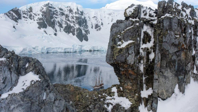 First came the Drake, than the glorious arrival, followed by a day of sunshine and exploring, two days of extreme wind and extreme surprises, and now two days of calm beauty, passages and landings close to how Antarctica often is imagined. Suddenly, on the morning of the 23th – it was calm. And sunny. All first plans worked out and they did so without hesitation.It was sunny, bright, calm and we could see the mountains towering around us. The snow on the deck melted, we climbed up in the mast and out on the bowsprit and continued our way South without changing around. The last two days brought us through Graham passage, Wilhelmina Bay, on to a landing on the continent itself ( and a swim!) in Orne Harbour, to Cuverville island with the Gentoo penguins, past Eclipse point, through Lemaire, all the way to Winter island.