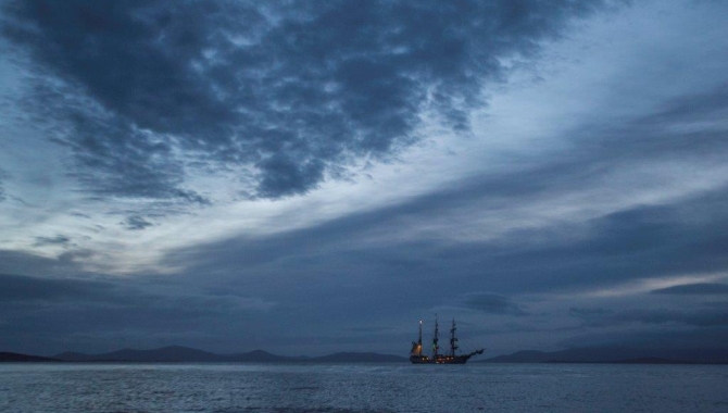 The clear skies, calm seas and light breeze from last night, changed this morning into a solid stormy weather. At dawn a second anchor was dropped to withstand the gusting winds over 30kn, while the low clouds and rain limited the visibility, making it difficult sometimes to see even the coastline, distant just a nautical mile. On that weather conditions the best thing for us to do is to sit and wait for the forecasted weather improvement. In the meantime, we spend the morning listening to a couple of talks. First Katelin explained a bit about history of sailing and how the ship’s rigs have been evolving and improving with the times. Later, Jordi went on with his accounts on his involvement with research groups studying Black-browed albatrosses.