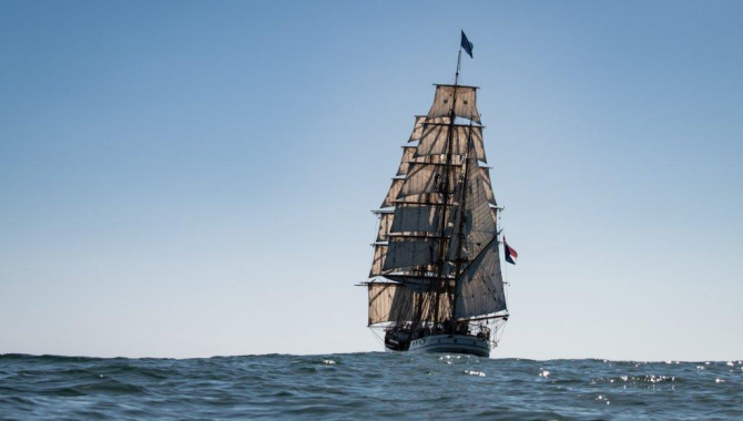 A night spent sailhandling on light breeze, bracing several times and gybing to Starboard tack, expecting a fair breeze to pull us to our anchorage or the port pilot station in front of Montevideo. But still the sunrise over the clear skies found us with almost all our canvas set drifting in a windless situation. Courses are clewed up, and still with the rest of squares set plus higher and middle staysails, flying jib stowed away at the bowsprit, it is time to start the engines and gain some distance. Many days have passed since we hear their roaring, being lucky as we have been with the good winds to use their power and the sails for making progress.On that way, and doing the proper speed for a Manta trawl, checking for plastics in the waters of the mouth of Rio de la Plata, the last scientific samples of the trip are collected.With a total of over 50 trawls, the research conducted on board about plastics at sea can be considered a success, with trawls taken all over the crossing of the Atlantic. From Oceanic Subtropical areas, passing by the tropics, equatorial open waters, temperate systems close to the South American coasts and lastly a zone affected by large land inputs through Rio de la Plata, the net has been collecting samples to be studied during the next couple of months in the laboratory.On a similar way, plankton trawls for bioluminescence have been taken too along the way.With such an array of samples sure some interesting correlations will pop up between the different oceanic ecosystems, the physical characteristics of their waters, the variety of ocean currents that we crossed and the contents of the trawling nets. Currents driven by changes of salinity and temperature, affected by the continental boundaries, or guided by the forces produced by the rotation of the planet itself. Winds stirring the surface waters inducing their movement and mixing with deeper ones. Large atmospheric global circulation patterns and local ones with their changes on barometric pressure, Lows and Highs, storms and squalls. Areas rich in nutrients and others seemingly oceanic deserts. And at the end the human being and its effects on the whole system. A scientific sample taken from the field is never an isolated item, seeking knowledge is easy to get lost in the immensity of correlations between the microscopical scope and the macrocosmos scale. Sometimes easy, others difficult is to consider how many of those boxes that human are so keen on compartmentalize we should rip open to reach a conclusion.…the observer who earnestly pursues the path of knowledge is led from one class of phenomena to another, by means of the mutual dependence and connection existing between them.…This general picture of nature, which embraces within its wide scope the remotest nebulous spots, and the revolving double stars in the regions of space, no less than the telluric phenomena included under the department of geography of organic forms (such as plants, animals and races of men), comprises all that I deem most specially important with regard to the connection existing between generalities and specialties, while it moreover exemplifies, by the form and style of the composition, the mode of treatment pursued in the selection of the results obtained from experimental knowledge.Alexander van Humboldt. ´Cosmos´ (1859)Scientific equipment put away, now for the last time in this trip, lunch is served on deck and afterwards preparations begin to drop the inflatable boat and do some photographic tours around the ship, while she tries to catch the light sea-breeze of this afternoon. Warm air rises over the land around us and, growing clouds above it, while light wind from the ocean comes into the river mouth.Later on in the evening the wind increases and sailing downwind Europa picks up some speed, steering towards Montevideo.