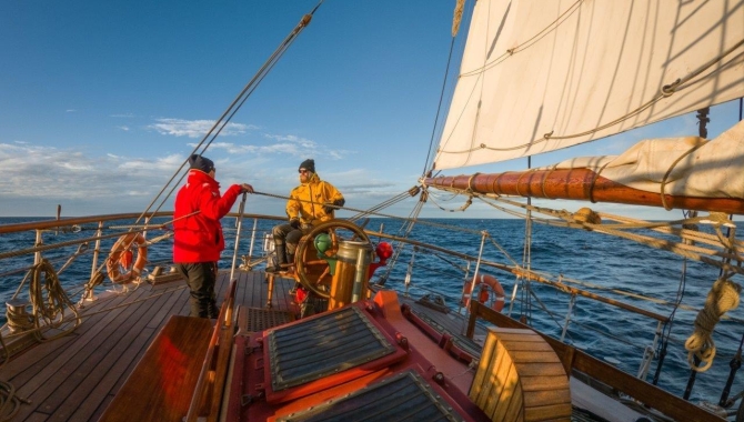 At some point, there’s enough of a fair wind to shut up the engines and sail once more. An indisputable elegant way of reaching land after about nine days at sea.