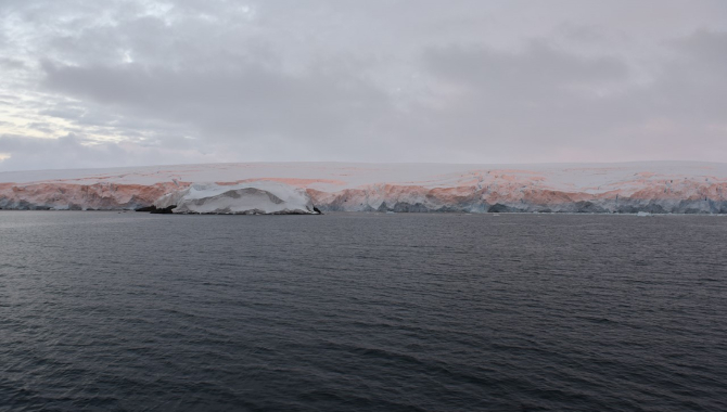At 4 a large, extremely orange boat, I don´t think you can call this a ship – comes in. It is a supply vessel, bringing stores and equipment, as well as new staff. They will set out on a month long research journey to the South. Since they need to unload and all staff is involved, we quickly have to make way and return to our ship. Once back on board we have time to just enjoy. It is early in the evening, the weather conditions are unique as always, and since we will be anchored here for the night, we almost have a sense of weekend. It is great to spent some time in the same place, see the light change, the glacier calf and observe the crab eater seals laying in the sun on one of the icebergs.