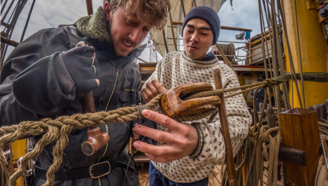 A wind situation where we find ourselves that slightly veers to more southerly during the late afternoon and then starts to die down. By nighttime, a light breeze blows and the swell is abating too. The ship virtually stops and drifts with the currents for a while until we decide to take sails away, start packing them, and start engines. Ahead of us, approximately 250nm until reaching the northern shores of South Georgia. A distance that we will start making under engine. Who knows, if fair winds blow again during the next couple of days, sure we will set sail again.