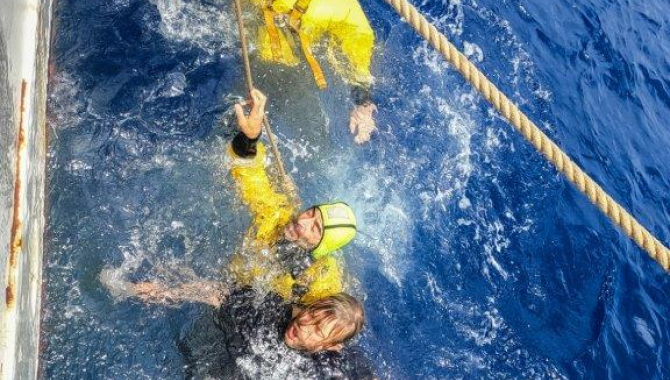The nice sunrise announced what was going to be a gorgeous morning weather. While the day starts, Europa rolls over a crossed swell on a downwind SW course, pulled at 3.8 to 5kn by 12 to 14kn of fair breeze. An appropriate speed for trying yet another Manta trawl in the micro plastics research project hosted on board.With just about 570nm left until arrival to Montevideo, and an expected weather change coming soon, sure our scientists are excited to do their lasts sample collections whenever it is still possible.Sailing at 270nm from the coastline, the morning trawl proved to be a good example of the amount of plastic pollution drifting along the Brazilian shores, which we have been following southbound for already a few days.We have left the tropics and has entered a much colder climate with at times strong wind and heavy rain. We are at Lat. 30'57.766 S and Long. 46'10.331W just at the end of the Brazilian current that marks the western boundary of the South Atlantic gyre. The trawls done here has been full of microplastic particles much more than we have seen elsewhere in the Atlantic Ocean. Including the presence of several ‘Mermaid’s tears’, precursors of the fabrication of different plastics, and loaded with chemicals and pollutants. As floating small particles, they are used by phyto and zooplankton alike as an attachment surface in their drifting. Once cleaned of them during the processing of the samples, they look like white spheres.The presence of an increasing amount of plastics on those waters, could be that the Brazilian current transports plastic pollution all the way along the Brazilian coastline towards the South Atlantic Gyre and we are trawling at the end of the current before it meets the fresher subantarctic water of the Falkland current. The distribution and accumulation of ocean plastics is strongly influenced by currents and wind patterns. When the scientific equipment, nets and towing lines are stowed away, the stable and good weather conditions allowed again for serving the lunch buffet on the main deck. Good opportunity and timing for all of us to have a look at the ship passing by at our starboard-side while having our meal. The well known in the Southern Ocean British Navy-Survey-Science-Supply vessel and Fisheries patrol HMS Protector overtook the Europa on her way South to Falkland and South Georgia waters. Sure we will meet her again during the next months when Europa will venture into the Sub-Antarctic and Antarctic waters.Lunch put away, coffee served and by the time of changing watch in the afternoon, a continuous ring of our alarm bell signaled a Man Over Board exercise. Part of the mandatory monthly drills, it always adds a bit of excitement on the sailing days, with the crew performing their various tasks and supervising-directing the doings of the voyage crew, also involved in the activity.With a sharp lookout posted up the Mizzen mast and others helping pointing the victim from deck, all square sails must be clewed up, buntlines well pulled and their yards lowered, all in a quick action. The three Studding Sails flying at the port-side of the Fore Mast are the first ones to come down. In a few moments they pile up in the fore deck, … there will be time later to take care of the mess, now the important thing is to get the ship closer to the victim in the form of an orange fender, that lies somewhere there out at sea. Captain, Mate and Bosun shout their instructions, followed by all hands on deck, while the engines are switched on and Europa manoeuvre to get close to it. Two permanent crew members suit up and are ready to swim to the rescue, waiting by the port-side maindeck gate for Captain’s commands. When the supposedly casualty is close enough, one swimmer jumps in the ocean and get it, being towed on board afterwards. When alongside, the drill continues, now practicing hoisting the victim on deck. Once on board, Doctor and assistant are ready to take care of the situation.A successful exercise that finished with the chance for everyone for taking a swim before setting canvas again and resume our way. Turning around under sail to catch again the following wind, soon many hands could be seen on deck pulling halyards and sheets, now that everybody is awake after the drill and the refreshing swim.All square sails are set, braces pulled tight and all canvas trimmed to continue our way. With a NE-ly wind increasing, clouds starting to cover the sky, yards are pulled a point to Port tack and checking the forecast and the current state of the weather, is decided to de-rigg all the Studding Sails gear and put it away until their next time to show up comes, probably in months to come. The strong winds and famous dreadful whether and sea conditions of the Southern Ocean and Antarctic waters don’t make for their use. Skysail Masts, Yards and sails will follow their fate soon and will remain stowed away until their next chance to show themselves at the very top of the Europa.Halyard and Sheet lines come off and are coiled down, their blocks untied from aloft and piled on the working bench waiting to be labeled and packed.But still, luckily enough during the night, the gradually rising winds allowed for a successful plankton trawl. As soon as the net is in the water it starts sparkling as it disturbs the bioluminescent phytoplankton and makes it shine. Then, under close examination under microscope and photo camera, it reveals its glowing nature in the confined environment of the petri dishes, offering singular views and good chances for scientific and more creative pictures alike.Science and art sometimes can touch one another, like two pieces of the jigsaw puzzle which is our human life, and that contact may be made across the borderline between the two respective domains. M. C. Escher