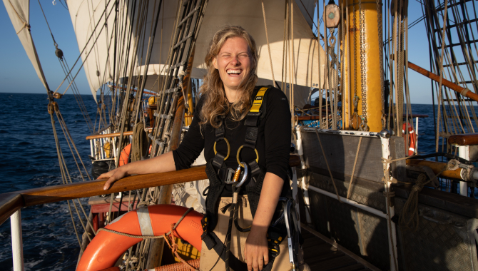 I have always been drawn to the ocean, and not just because of my profession as a marine biologist. My dad used to own a small sailing boat, and the men of my family have a history of working at sea. While I never learned how to sail properly, during a sailing trip on the Wadden Sea, I heard about the Bark Europa. Instantly, I knew I wanted to be part of its crew. I think I called or emailed the next day, probably both. I was so determined that I had already made an appointment for a medical examination and a seamanās book before knowing if Bark Europa would actually let me join. Fortunately, they did! It's been a magical experience so far. Plus, it has been beautiful to connect with my grandfather, telling each other stories of our days on the ocean!